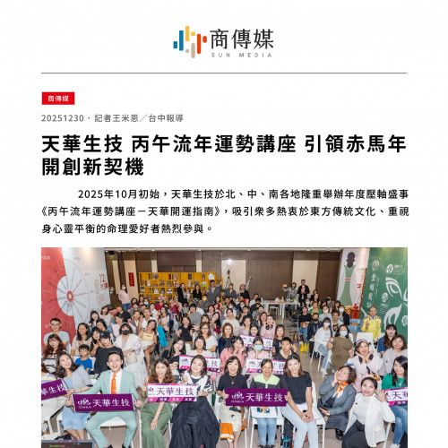 商傳媒|天華生技 丙午流年運勢講座 引領赤馬年開創新契機