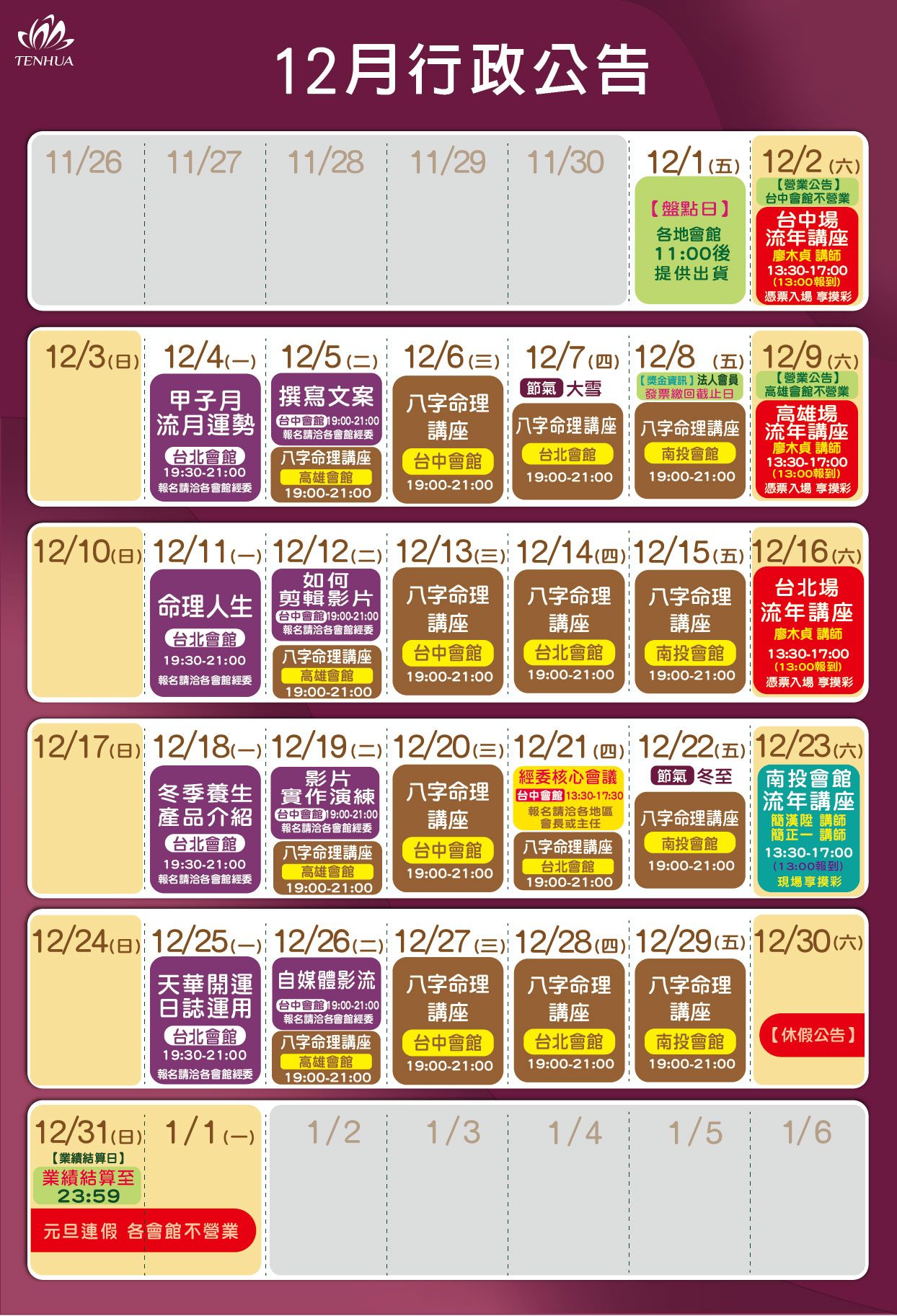 12/2台中、12/9高雄、12/16台北、12/23南投 流年講座