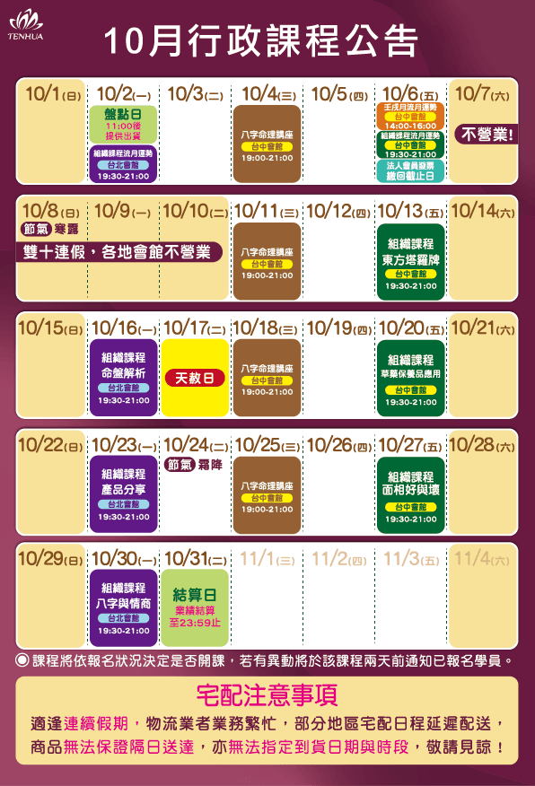🚩10/6 14:00-16:00 壬戌月流月運勢,實體課程+線上直播@台中會館